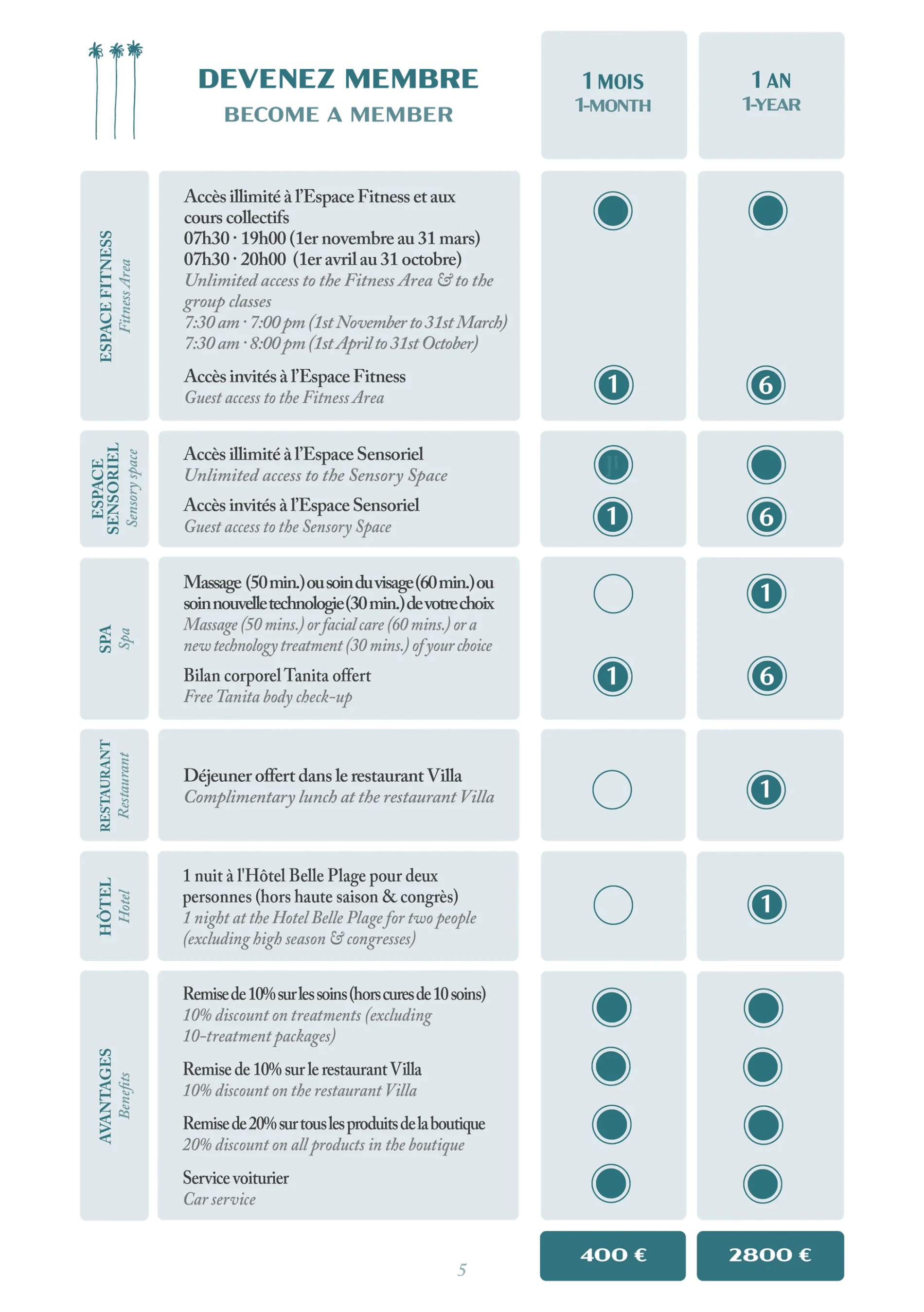 DES EXCLUSIVITÉS DU SPA VILLA BELLE PLAGE.